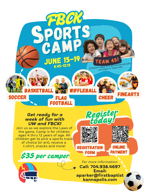 WE are so excited for another summer of fun with your child! Register today using the icons above! We also opened the payment portal so you can conveniently make payments online. Sports Camp+ is $35 per camper and includes the week of camp, snacks, materials and t-shirt.