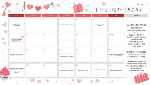 - Hurricane Helene Disaster Recovery Trip / February 22 - 26 / Contact Paul Miller, Tom Cabaniss, or the church office if you would like to participate / Register by February 8th