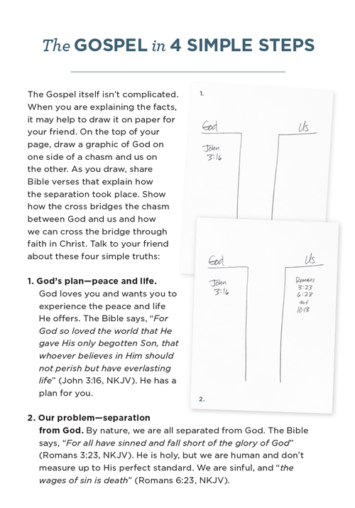 Thanks to the Billy Graham Evangelistic Association for "The Gospel in 4 Simple Steps" explanation and visual content above.